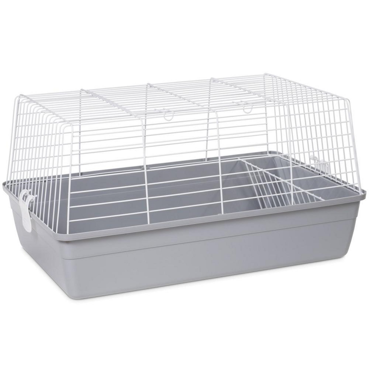 Prevue Pet Products Bella cage is ideal for guinea pigs and rabbits. It features and all-welded mesh with 1" wire spacing, and a large top-opening door. The deep base has a built-in angled hayrack. Snap-off end clips hold the mesh securing in place and remove easily for cleaning.